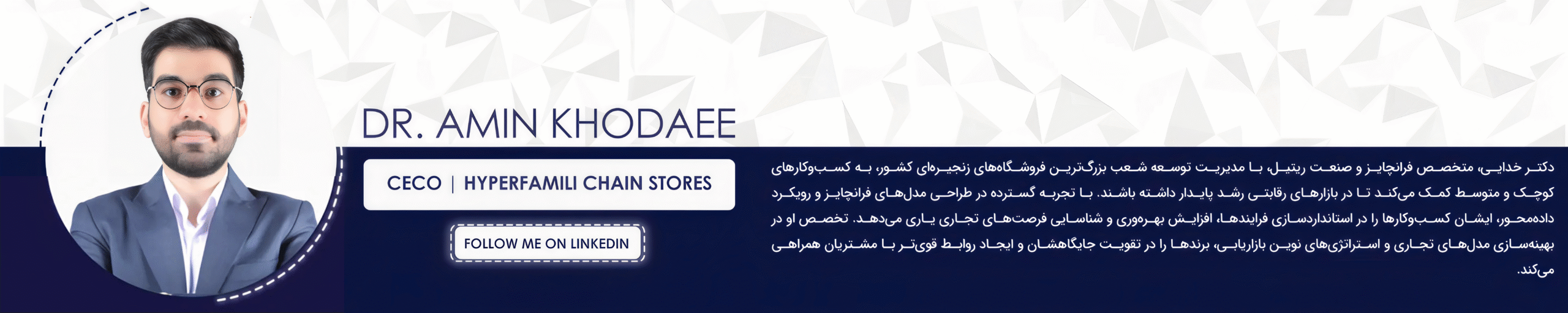 بهعنوان مدیر توسعه شعب با تخصص در فرانچایز و صنعت ریتیل، هدف من کمک به کسبوکارهای کوچک و متوسط است تا در بازارهای رقابتی رشد و توسعه پایدار داشته باشند. تجربه گستردهای در طراحی، سیستمسازی و پیادهسازی مدلهای فرانچایز دارم که به کسبوکارها این امکان را میدهد که فرایندهای خود را استاندارد کرده و بهرهوری را افزایش دهند.