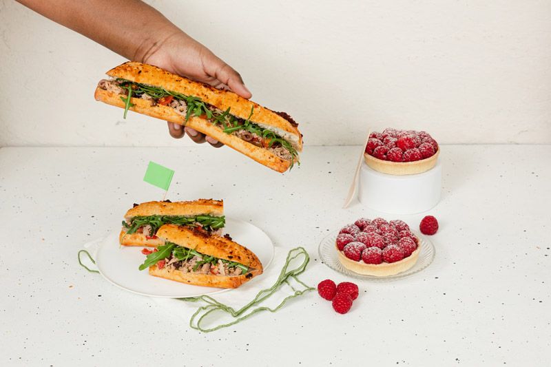 مجموعه کامل یک شیرینیفروشی فرانسوی: نان وین، شیرینیجات، ساندویچها، خدمات پذیرایی، و قهوه/چای